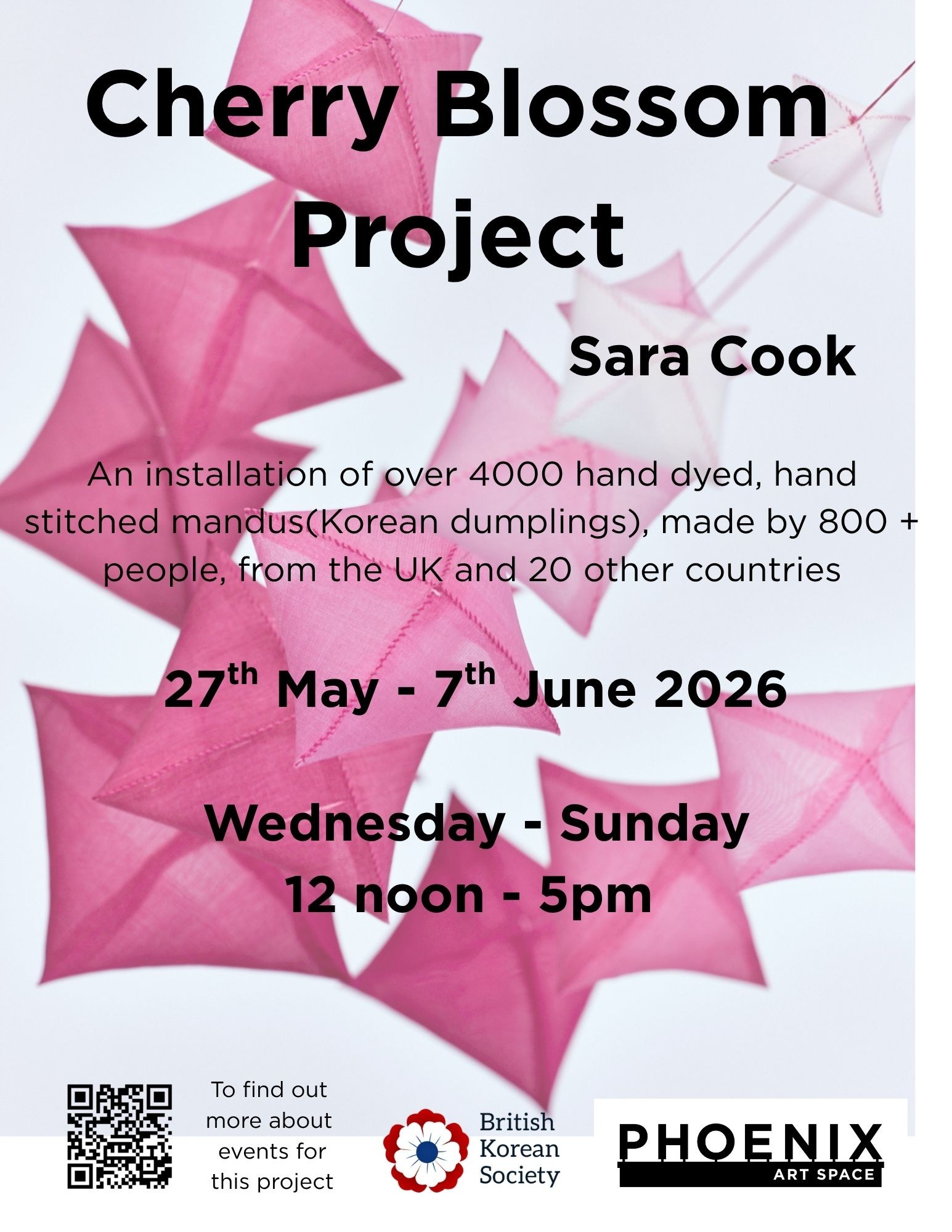 This exciting installation of over 4000 naturally dyed, hand stitched mandus (Korean dumplings) mobiles will be opening at the Phoenix Art Space, 27th May- 7th June 2026, Wednesday – Sunday, 12noon – 5pm.
