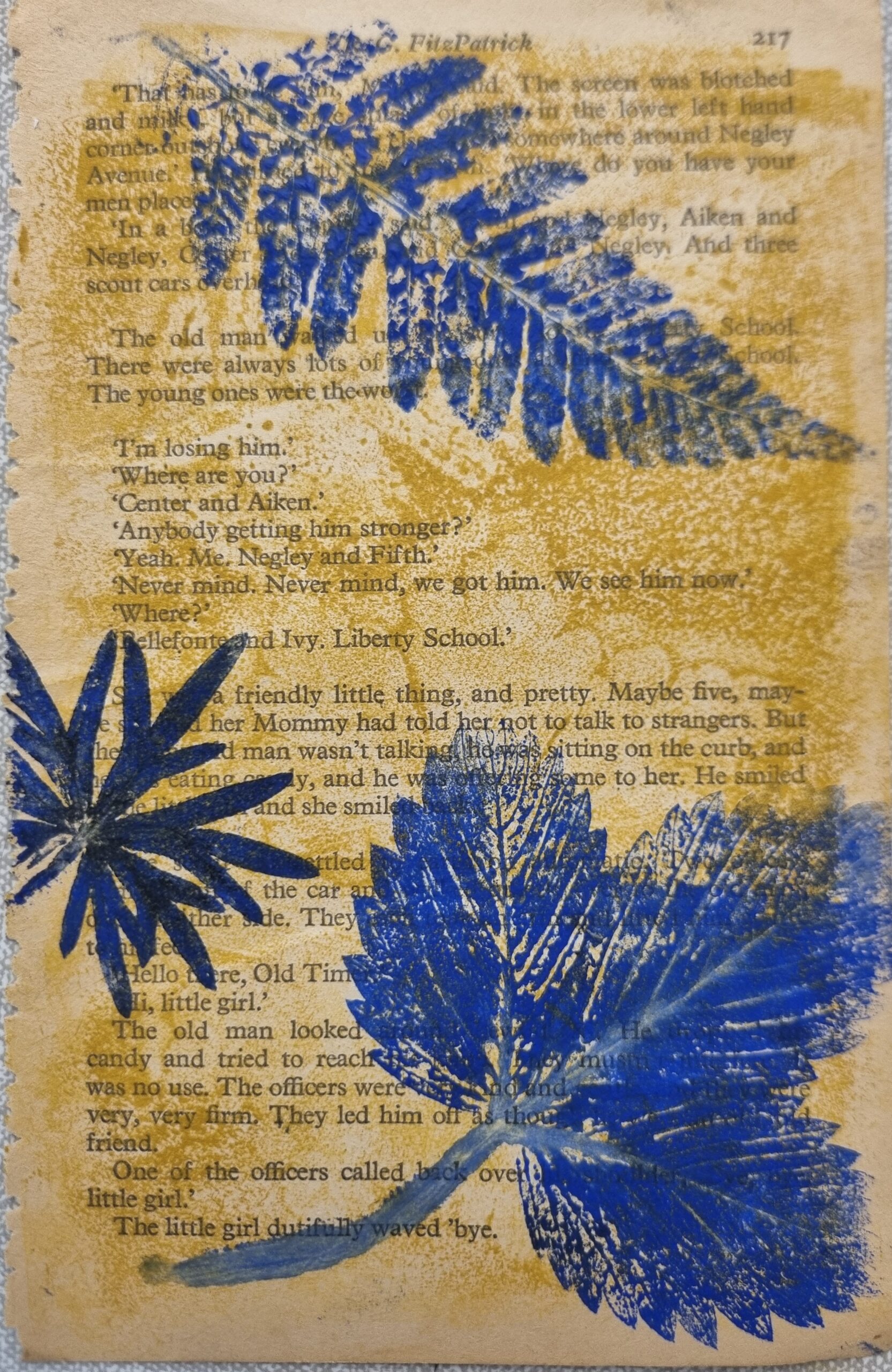 Monoprinting is a printmaking process that produces unique, one-off images. We will explore a range of techniques, including the direct, object, and subtraction methods. Working on sheets of glass or plastic, we will use rollers, rags, cotton buds, pencils, and pens to create images. Objects such as leaves and feathers can also be rolled into the ink to capture their texture and shape.